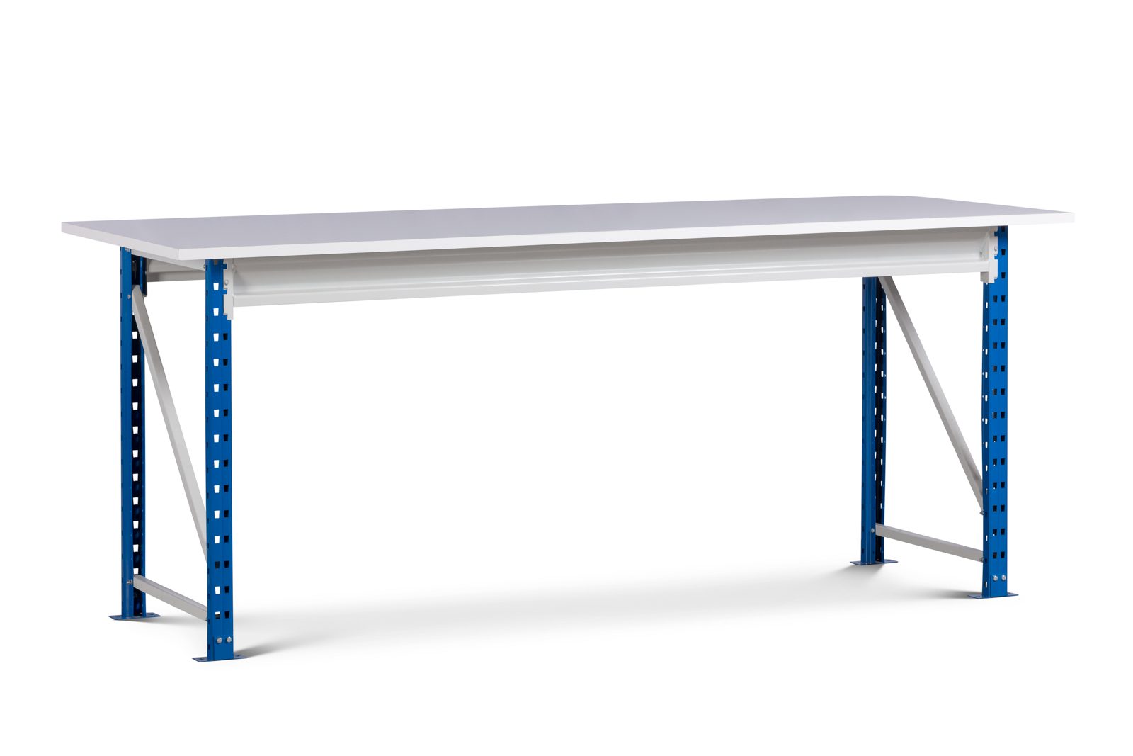 Bancada modular robusta da Linha Porteco, concebida para ambientes industriais, oficinas e armazéns. Estrutura em aço reforçado com vigas Z60 e Z100, tampo de melamina branca de 19mm e opção de prateleira inferior para arrumação adicional. Disponível em várias dimensões, com montagem rápida e acabamento profissional .