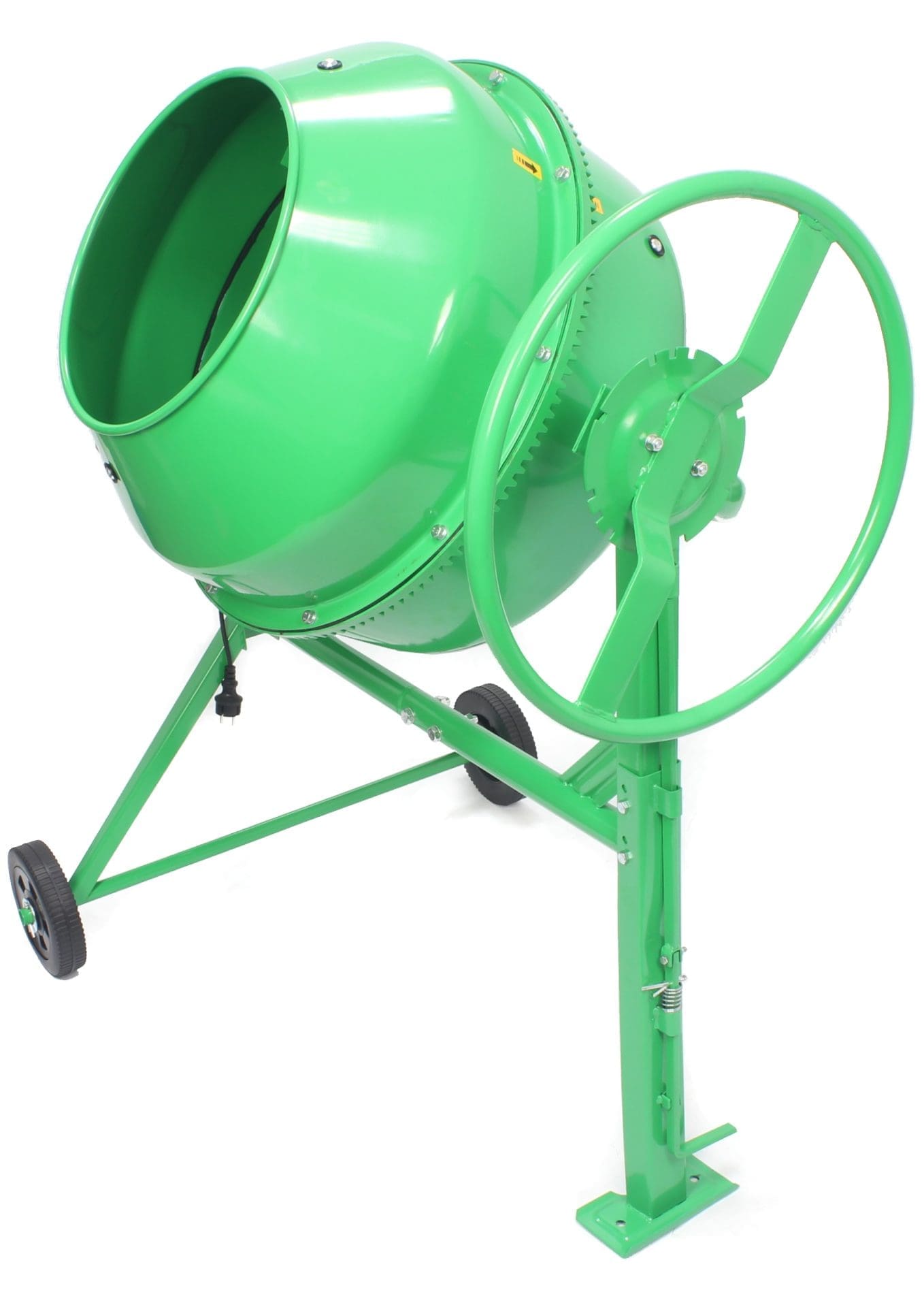 Equipada com motor elétrico monofásico de 650 W, esta betoneira oferece um excelente equilíbrio entre potência e portabilidade. Com capacidade total de 140 litros (110 litros de mistura líquida) e uma abertura de tambor de Ø 390 mm, é fácil de carregar e descarregar. As duas rodas integradas garantem mobilidade e praticidade no transporte.