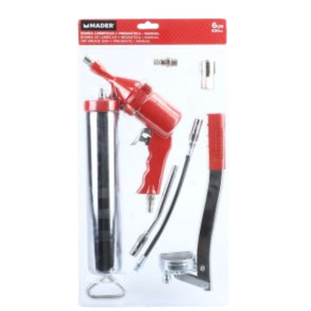 A Bomba de Lubrificar Manual/Pneumática MADER 500 cc foi desenvolvida para operações de manutenção que exigem aplicação controlada, eficiente e contínua de massas lubrificantes. Compatível com funcionamento manual ou pneumático, oferece elevada versatilidade em oficinas, indústria, agricultura e manutenção automóvel.