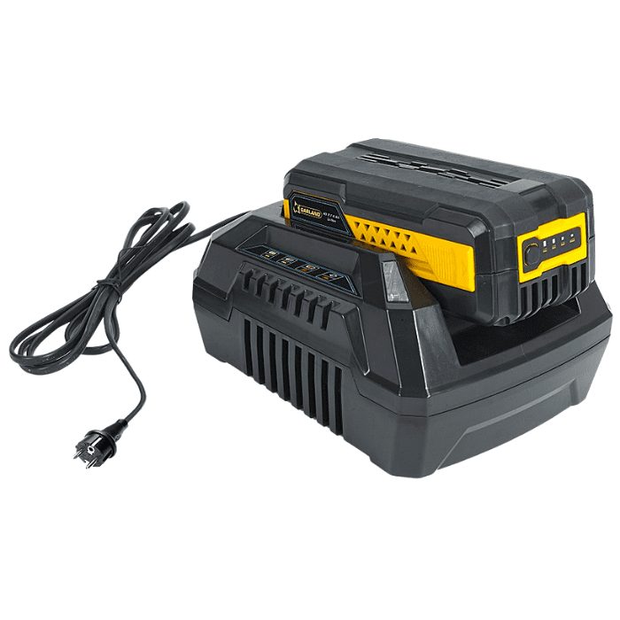Carregador rápido para baterias Garland Keeper de 40 V ion litio. Permite a carga total da bateria 2Ah en menos de 25 min. e da de 4 Ah en menos de 50 min. Circuito de proteção contra sobrecarga, inversão de polaridade e curto-circuito. Sem bateria incluída.