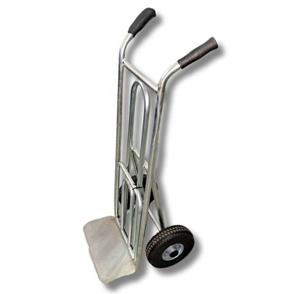 Construído em aço de alta qualidade com tratamento anticorrosão, alia robustez a uma durabilidade excecional. Além disso, as rodas pneumáticas de grandes dimensões facilitam a movimentação em pisos irregulares ou até em degraus, assegurando conforto e rapidez na operação.