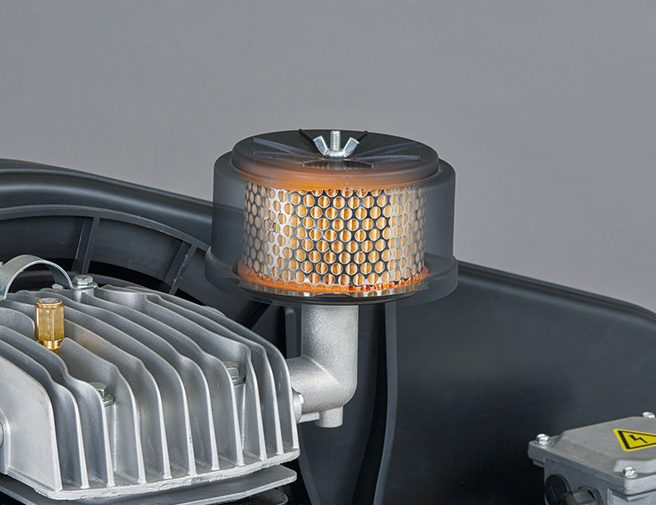 Filtro de aspiração de grandes dimensões: Projetado para reduzir o nível de ruído e otimizar o desempenho do compressor.