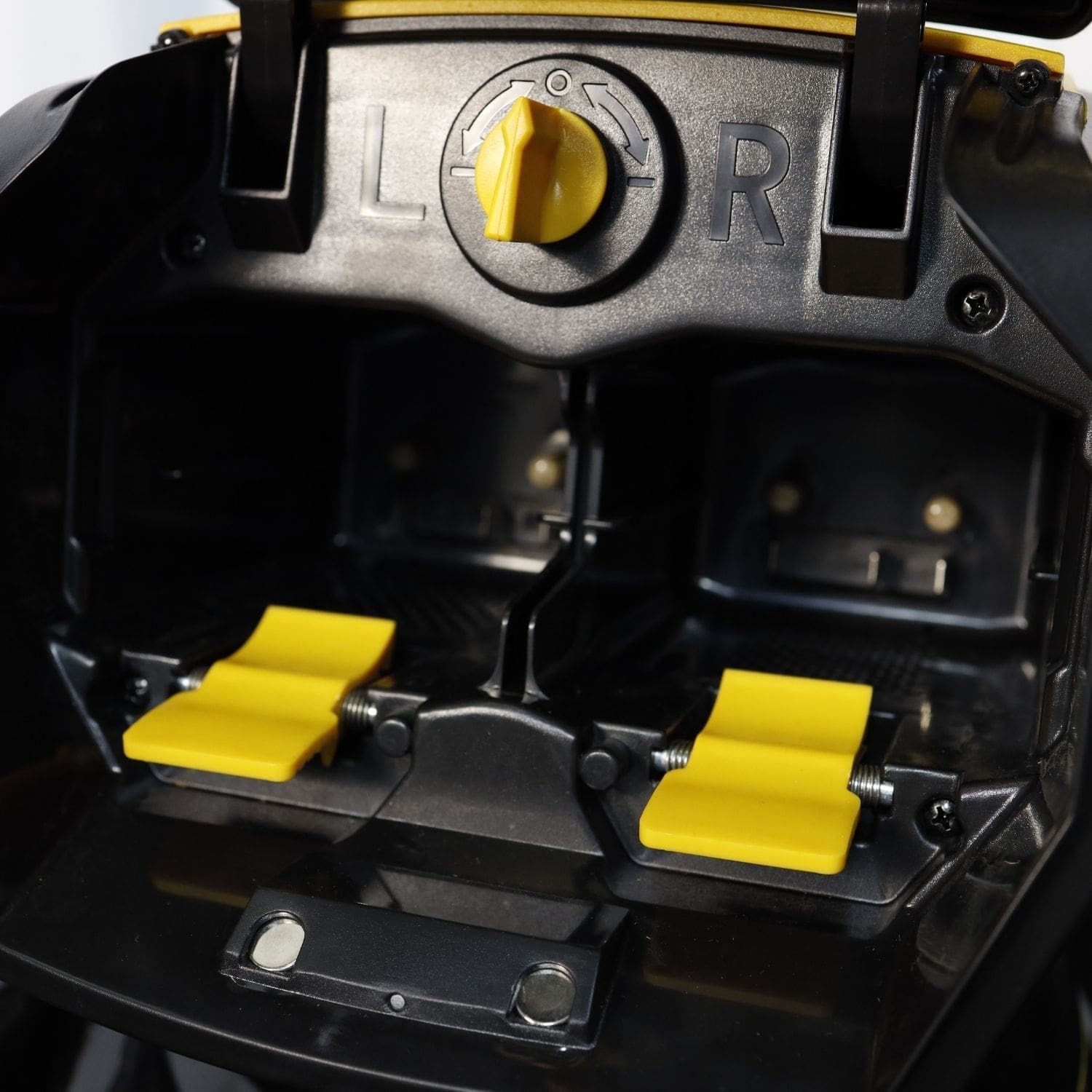Possui conexão para uma segunda bateria, que deve ser selecionada manualmente quando a primeira acabar, permitindo trabalhar por mais tempo sem precisar se deslocar para trocá-la.