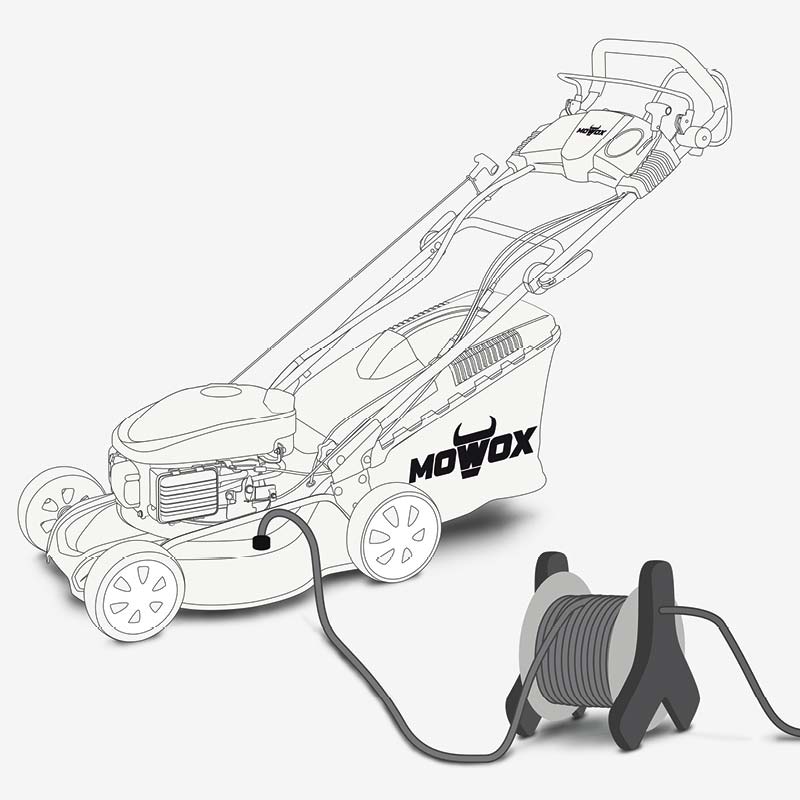 Equipado com entrada para mangueira de água, essencial para facilitar a lavagem após a sua utilização, contribuindo para o prolongamento da vida útil da sua Mowox