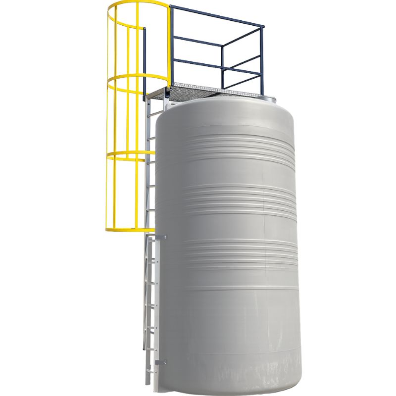Escada exterior fixa para depósito vertical, conforme norma EN ISO 14122-4:2016. Obrigatória em depósitos com altura superior a 3 metros. Instalação de fábrica no momento da encomenda do depósito.