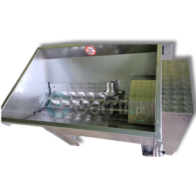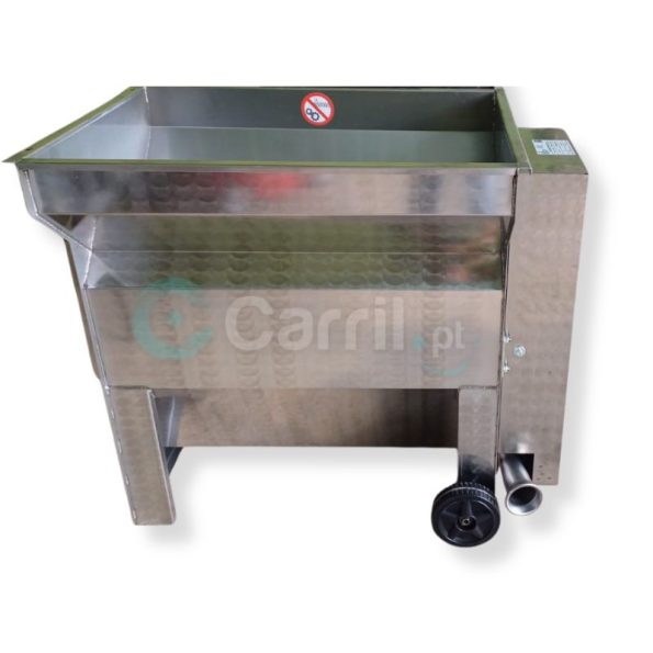 Equipado com um potente motor elétrico de 1.5 CV (220V/50Hz). Possui um sistema de transmissão por correia e corrente, assim, garantindo robustez mecânica e fiabilidade. Assim, a  bomba em inox com saída de 60 mm permite transferir o mosto até 4 metros de altura, acelerando o processo produtivo.