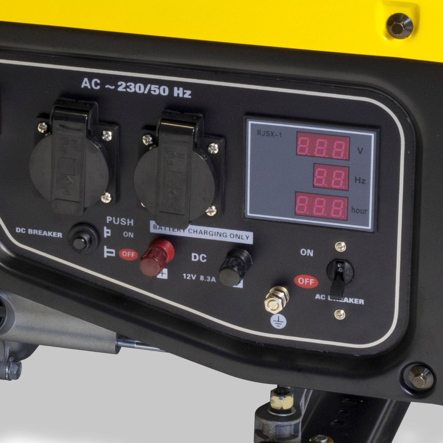 Tanto o motor quanto o gerador são assentes numa estrutura de aço que os protege contra danos acidentais. Além disso, possui display de indicação do nível de combustível.