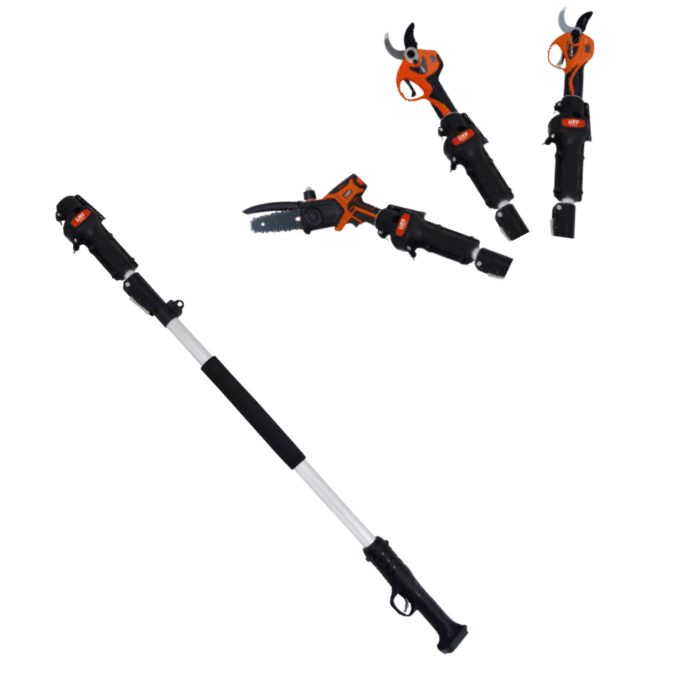 Permite podar árvores facilmente do solo, eliminando a necessidade de escadas.