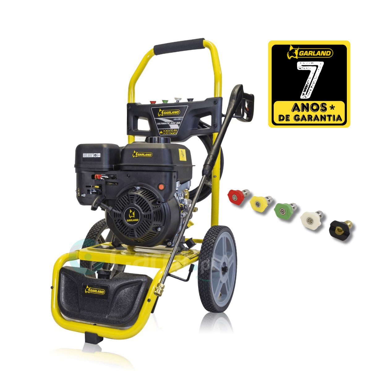 A lavadora de alta pressão Garland a gasolina é a solução ideal para trabalhos intensivos e locais sem acesso à rede elétrica. Equipada com um potente motor 4 tempos OHV de 207 cc e 5.4 HP, oferece autonomia, fiabilidade e desempenho profissional, tornando-a perfeita para uso agrícola, construção, oficinas ou lavagens industriais.