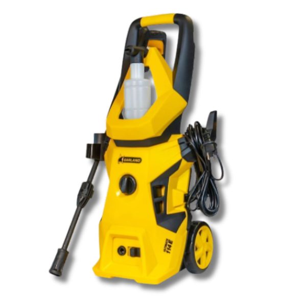 Lavadora de alta pressão, com motor elétrico de 1.800 W, 140 bar de pressão máxima e 420 l/h, ideal para uso doméstico.