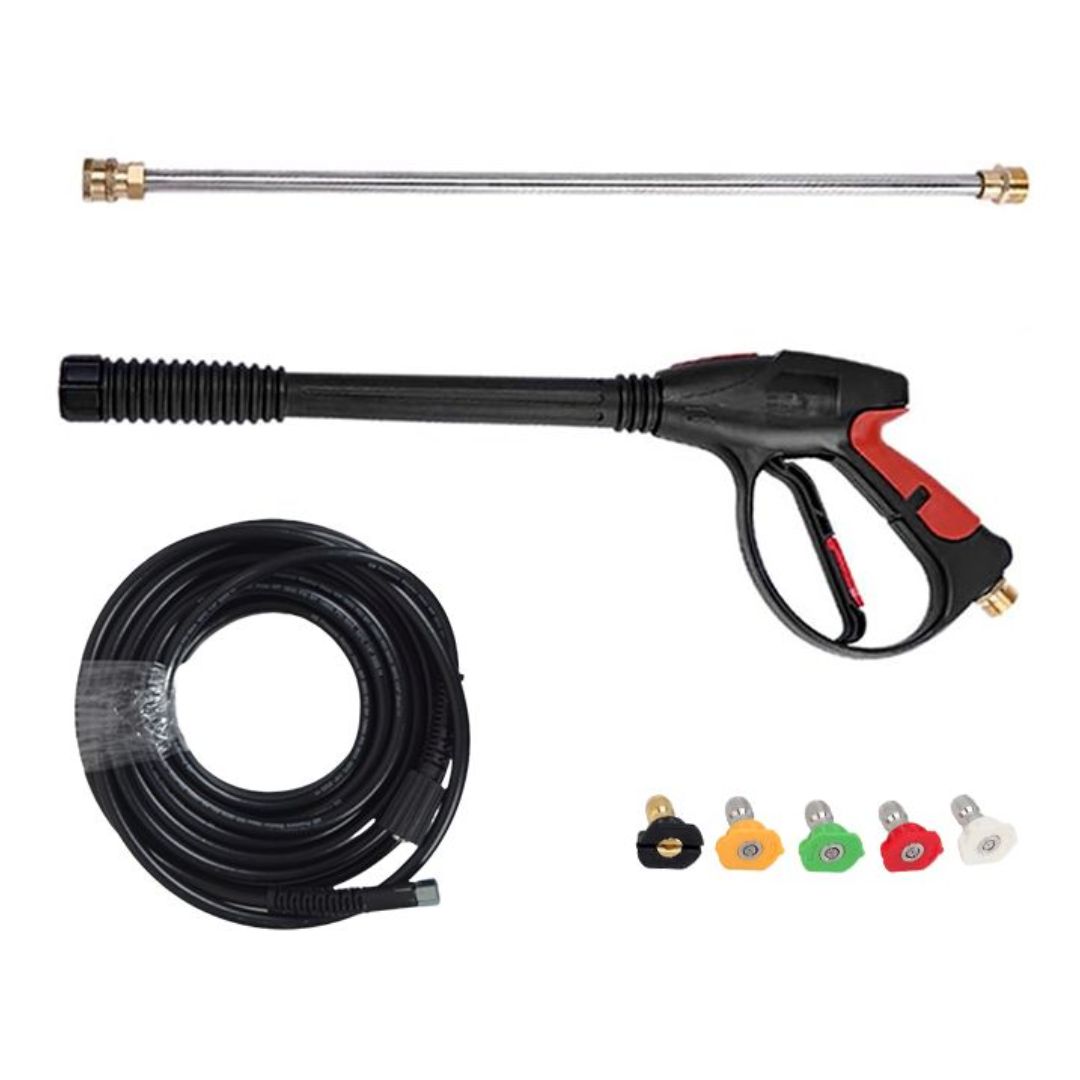 Acessórios: 5 bicos, lança, pistola, kit de detergente