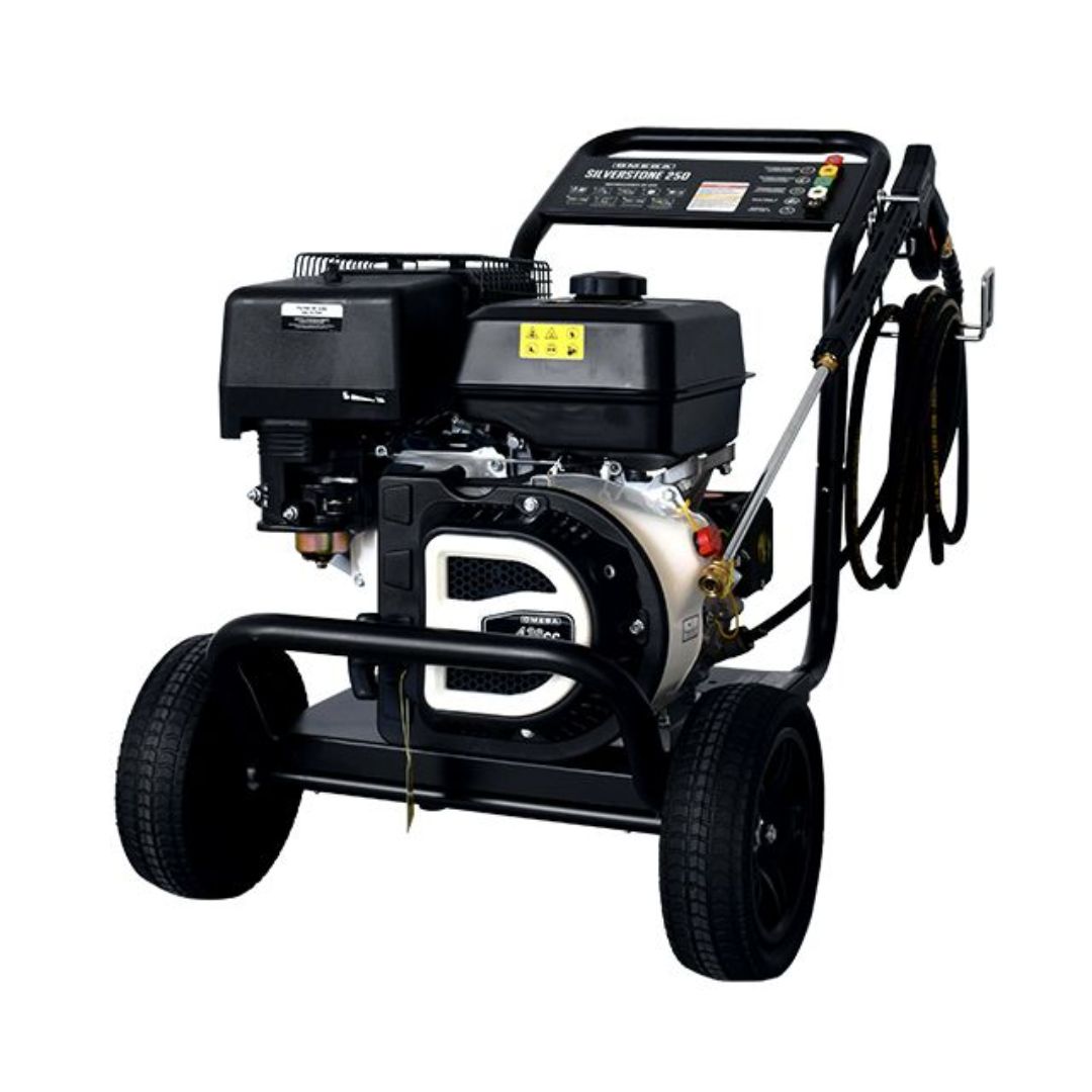 A lavadora Silverstone 250 é uma máquina de alta pressão a gasolina, projetada para profissionais que necessitam de alto desempenho em tarefas de limpeza intensiva. Além disso é equipada com um potente motor de 15 cavalos, esta máquina oferece uma pressão de 250 bar e um caudal de 18 litros por minuto, tornando-a ideal para remoção de sujidade persistente em ambientes industriais, agrícolas, obras ou até lavagens de veículos pesados.
