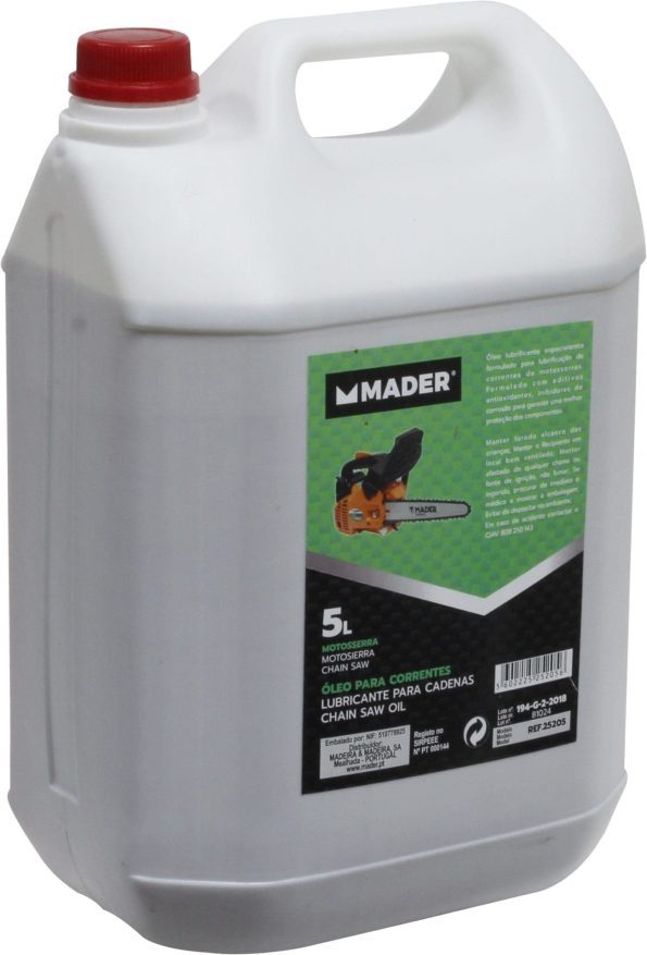 O óleo para corrente de motosserra MADER 5L desenvolvido para garantir uma lubrificação eficaz e prolongada, protegendo a corrente e a barra guia contra o desgaste. Portanto, é ideal para utilizadores que procuram um produto fiável e de alta performance para uso frequente.