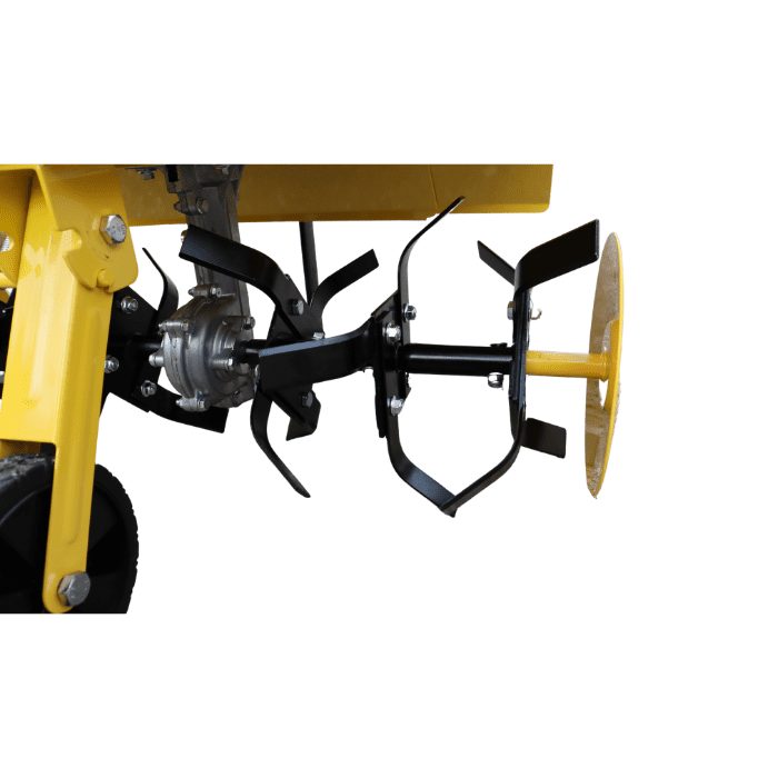 Motoenxada leve, com motor OHV a 4 tempos. 6 grupos de lâminas de parafuso duplo destacáveis montadas em um eixo de 20mm com proteção lateral de plantas. Permite trabalhar com 6 ou 4 grupos, podendo ajustar a largura do trabalho. Inclui roda de transporte retráctil e guia reto de 8x30mm com 4 alturas.
