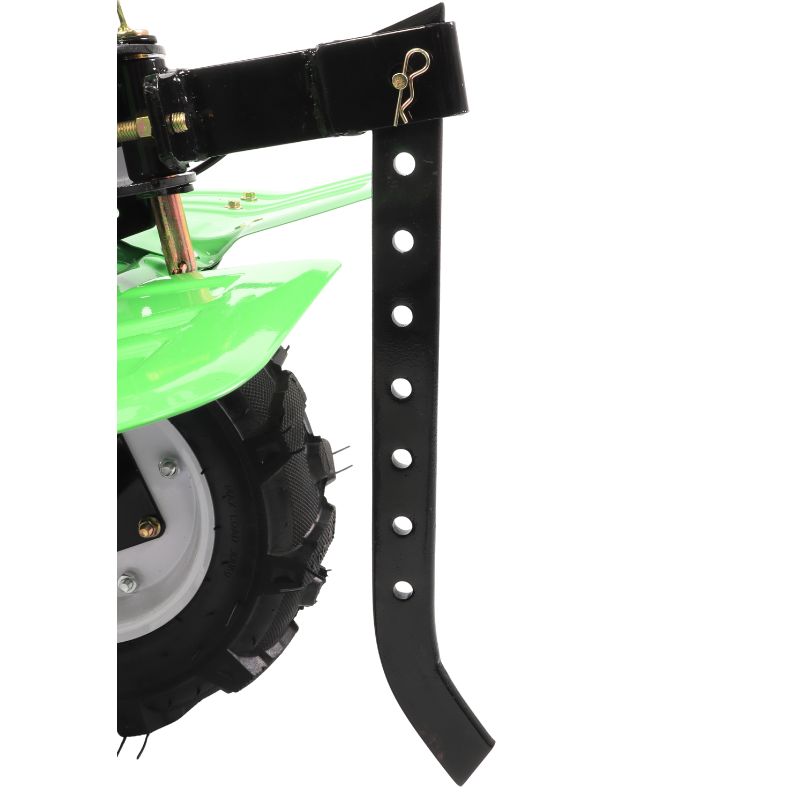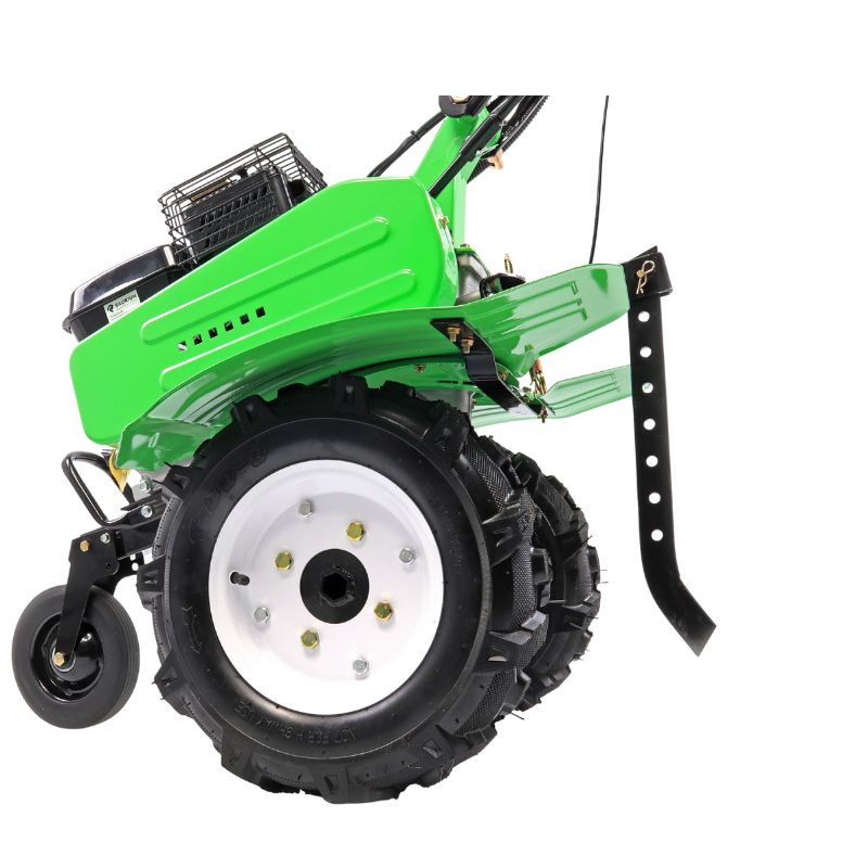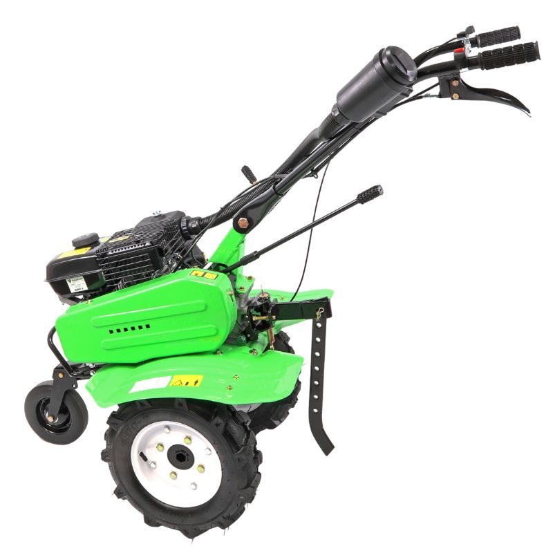 Possui ainda guiador regulável em altura, sistema de segurança de paragem automática e rodas pneumáticas 400×8” para melhor mobilidade. Com um depósito de combustível de 3,6 L, oferece uma excelente autonomia para qualquer tarefa