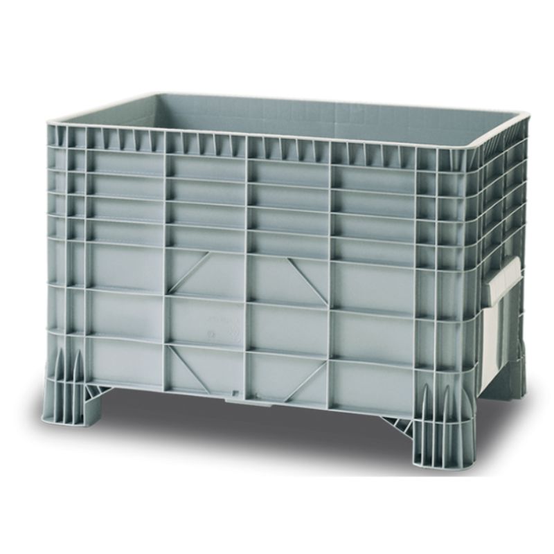 Com 550 L de capacidade e dimensões de 1200 x 800 x 800 mm, é indicado para setores como indústria alimentar, farmacêutica e logística. O design com paredes e fundo liso permite limpeza fácil e cumpre normas de higiene.