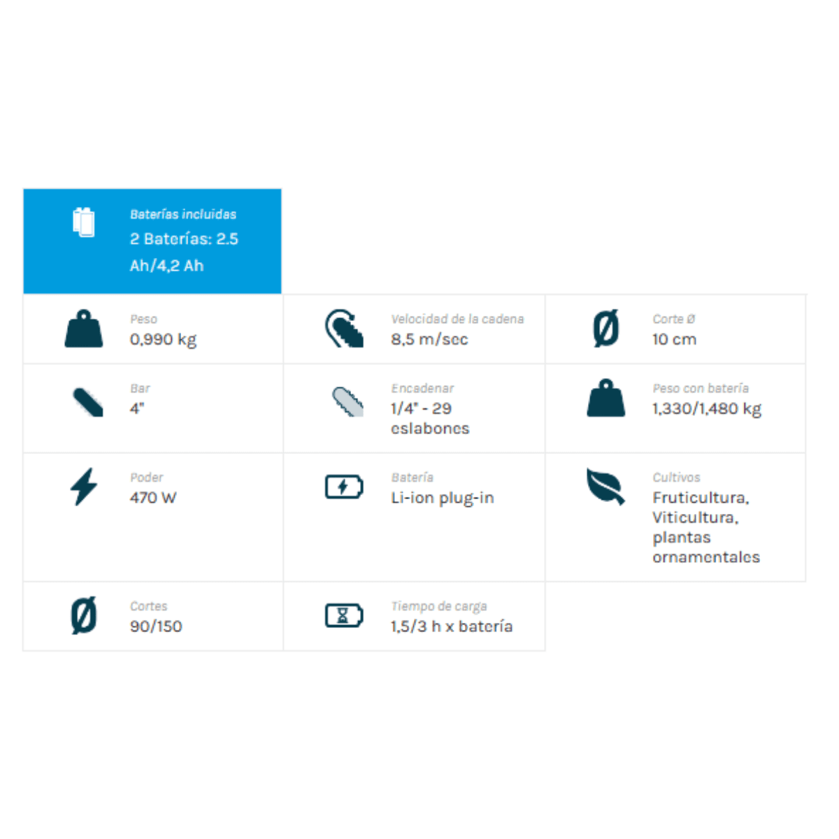 Quantidade Cortes (Ø 8cm): Bateria 2,5Ah: 90 cortes e a Bateria 4,2Ah: 150 cortes