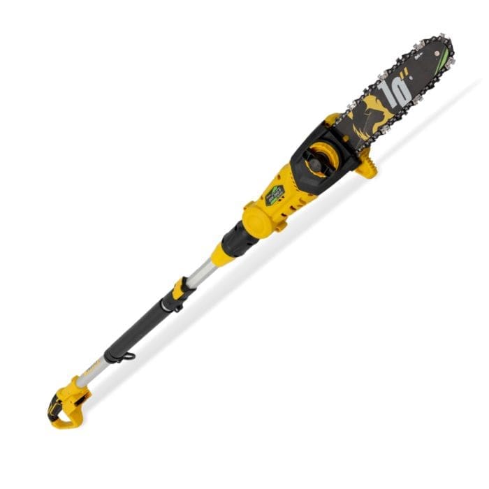 Portanto com a lâmina de 10″, corrente de baixo perfil de 3/8″ e cabeça ajustável de 0º a 40º, facilitando o acesso aos ramos mais inacessíveis. Com um haste extensível de alumínio permite trabalhar até quase 4m de altura (dependendo da altura do operador).