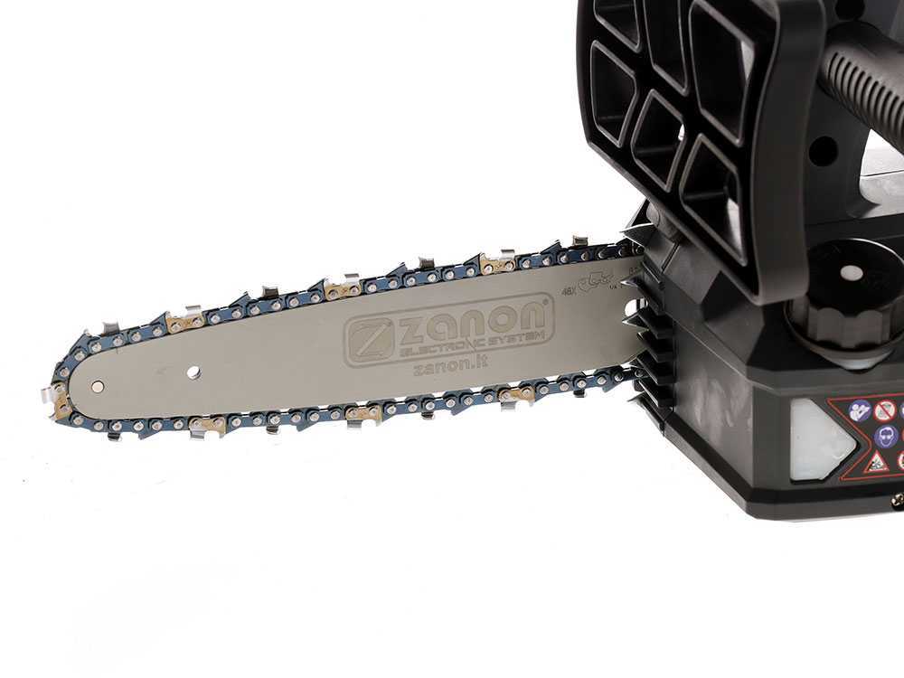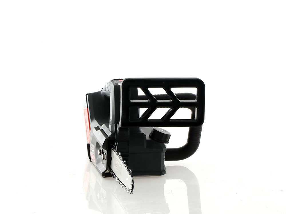 A bateria Li-Ion de 18 V e 5 Ah garante até 4 horas de autonomia, permitindo trabalhar de forma contínua sem interrupções frequentes. A lâmina de 20 cm, combinada com a corrente de passo 1/4’’, assegura cortes limpos e rápidos, ideais para ramos de pequeno e médio porte. O sistema de bomba automática de óleo mantém a corrente sempre lubrificada, aumentando a durabilidade e reduzindo o desgaste.