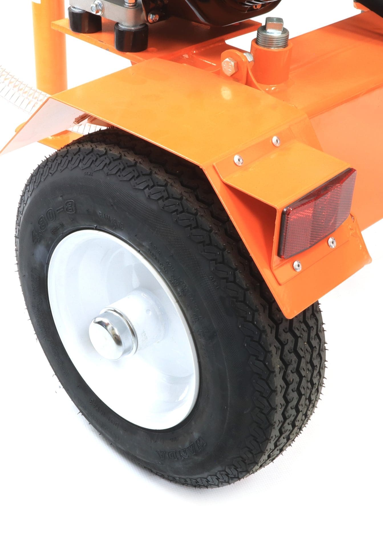 O sistema hidráulico conta com um depósito de 23,5 L, suportando até 3500 psi, e é compatível com óleo Telex E-46 (não incluído). A estrutura robusta e rodas com capacidade de reboque até 70 km/h tornam este rachador ideal para uso profissional em contexto florestal, agrícola ou industrial.