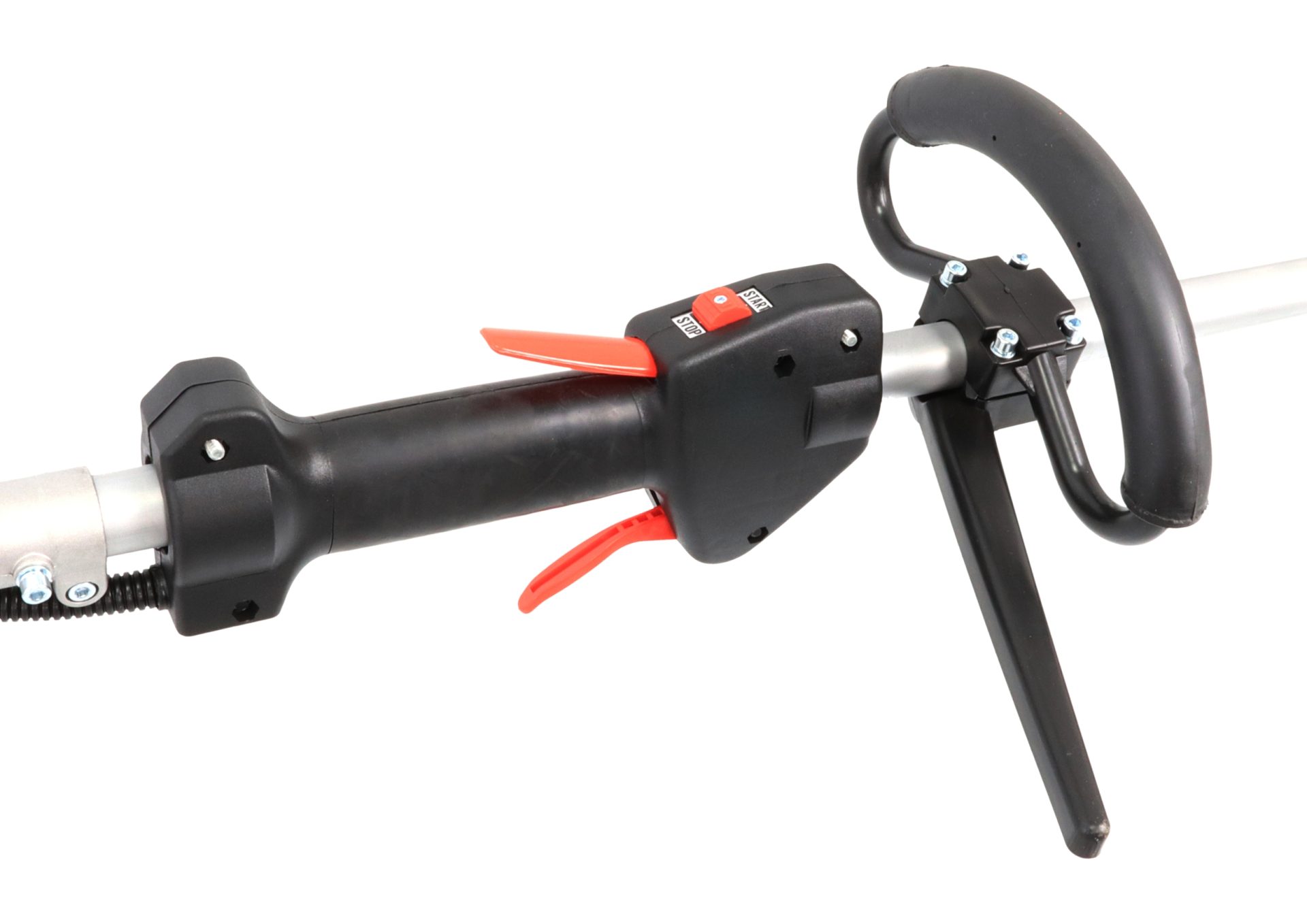 Roçadora com motor Kawasaki TJ45E de 2 tempos de 45,4 cc e 1,6 kW, ideal para trabalhos de manutenção em jardins, terrenos e zonas com vegetação densa. Equipada com pega simples, bobine de nylon e disco metálico de 3 dentes, garante versatilidade no corte. Compacta, potente e fácil de manusear — perfeita para uso intensivo com conforto e eficiência.