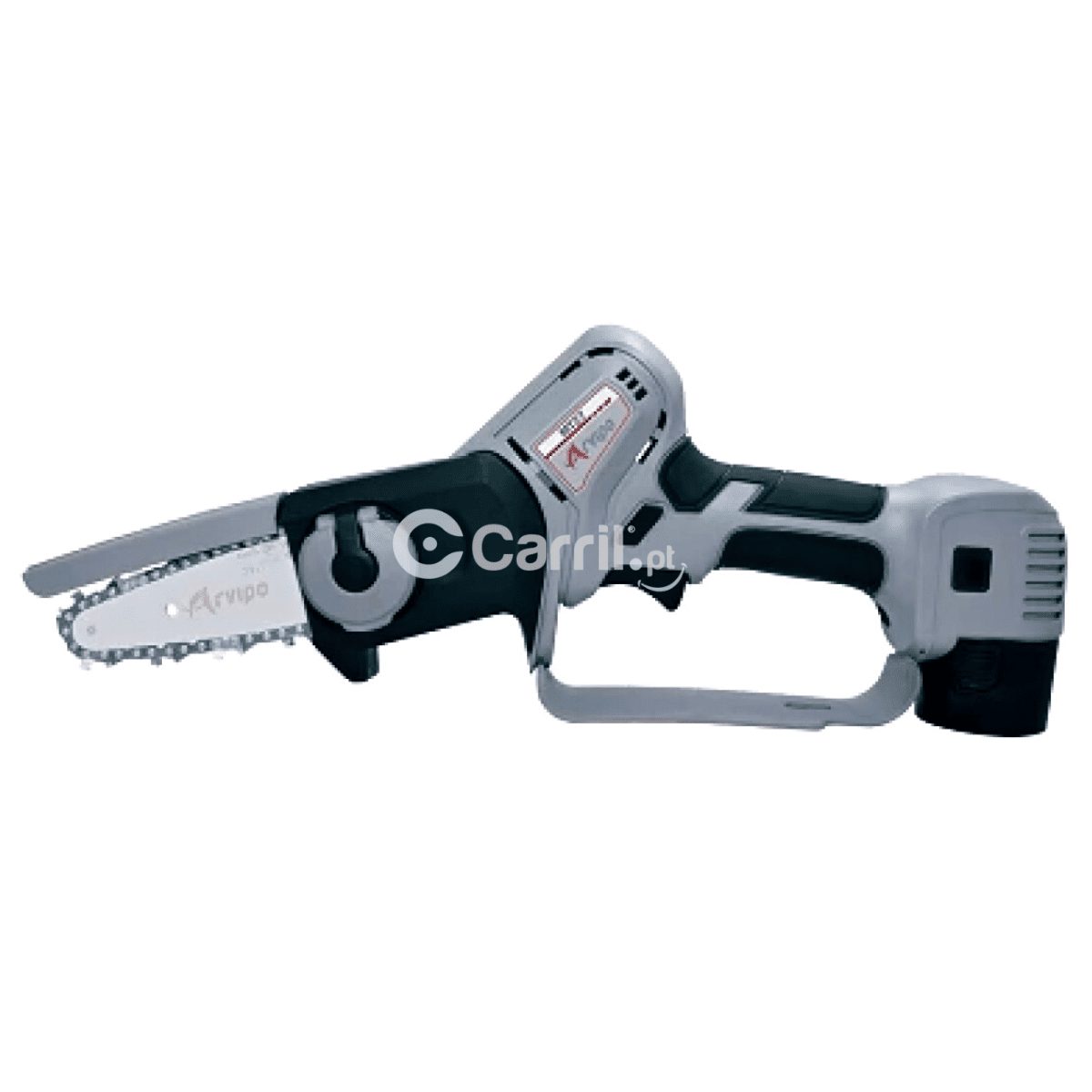 A serra elétrica ARVIPO MT27 foi concebida para trabalhos de poda ligeiros mas que necessitam de velocidade e liberdade de movimentos. Pesa apenas 1.07kg com bateria incluída.