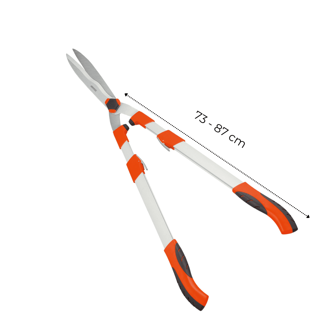 Com cabos telescópicos ajustáveis de 73 a 87 cm, esta tesoura adapta-se facilmente à altura de trabalho desejada, oferecendo alcance e flexibilidade superiores sem comprometer o controlo.