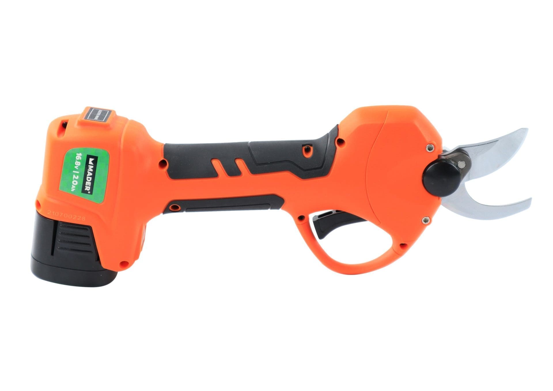 A Tesoura de Poda Elétrica Mader 16,8 V – 2,0 Ah foi desenvolvida para proporcionar podas rápidas, eficientes e sem esforço, sendo ideal para uso ocasional em jardins, pequenas árvores e arbustos. Leve, ergonómica e fácil de utilizar, garante conforto e controlo mesmo para utilizadores menos experientes.