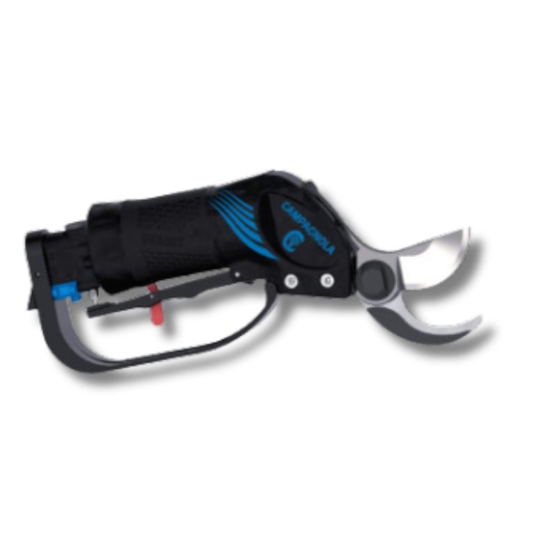 Tesoura pneumática profissional da linha Victory, fabricada com tecnologia High Tech Carbonium. Ideal para poda intensiva em fruticultura e viticultura. Leve, potente e com excelente capacidade de corte, compatível com alargadoras Campagnola.