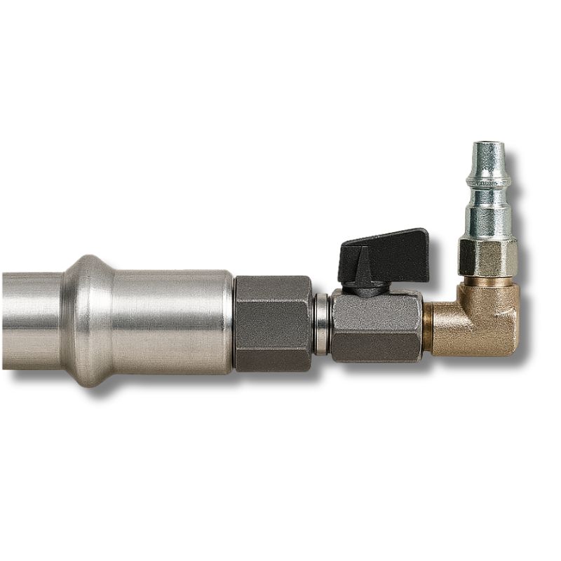 Válvula original Campagnola para ligação de ferramentas pneumáticas a alargadoras sem pega. Garante um fluxo de ar eficiente e uma ligação segura para varejadores.