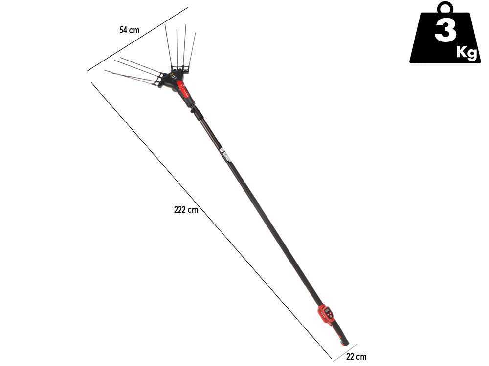 Inclui vara telescópica de carbono/alumínio com extensão de 2,22m a 3,10m, e um cabo de alimentação de 12 metros, garantindo grande liberdade de movimentos no campo.
