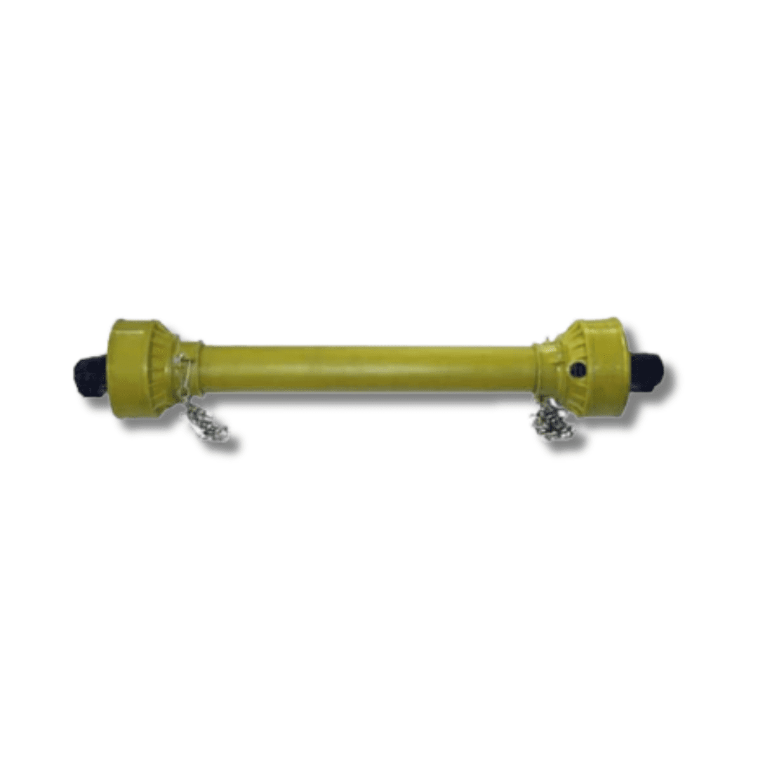 Veio de transmissão PTO robusto e durável, ideal para ligação entre trator e equipamentos agrícolas.